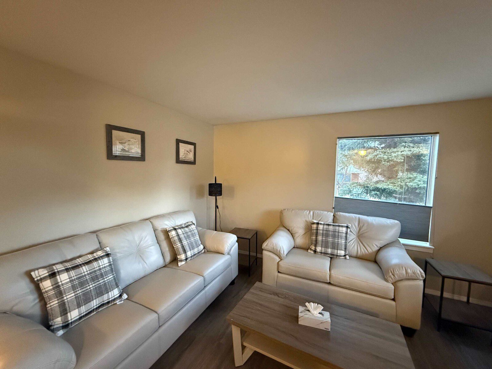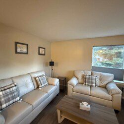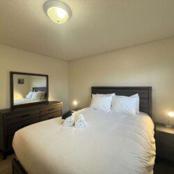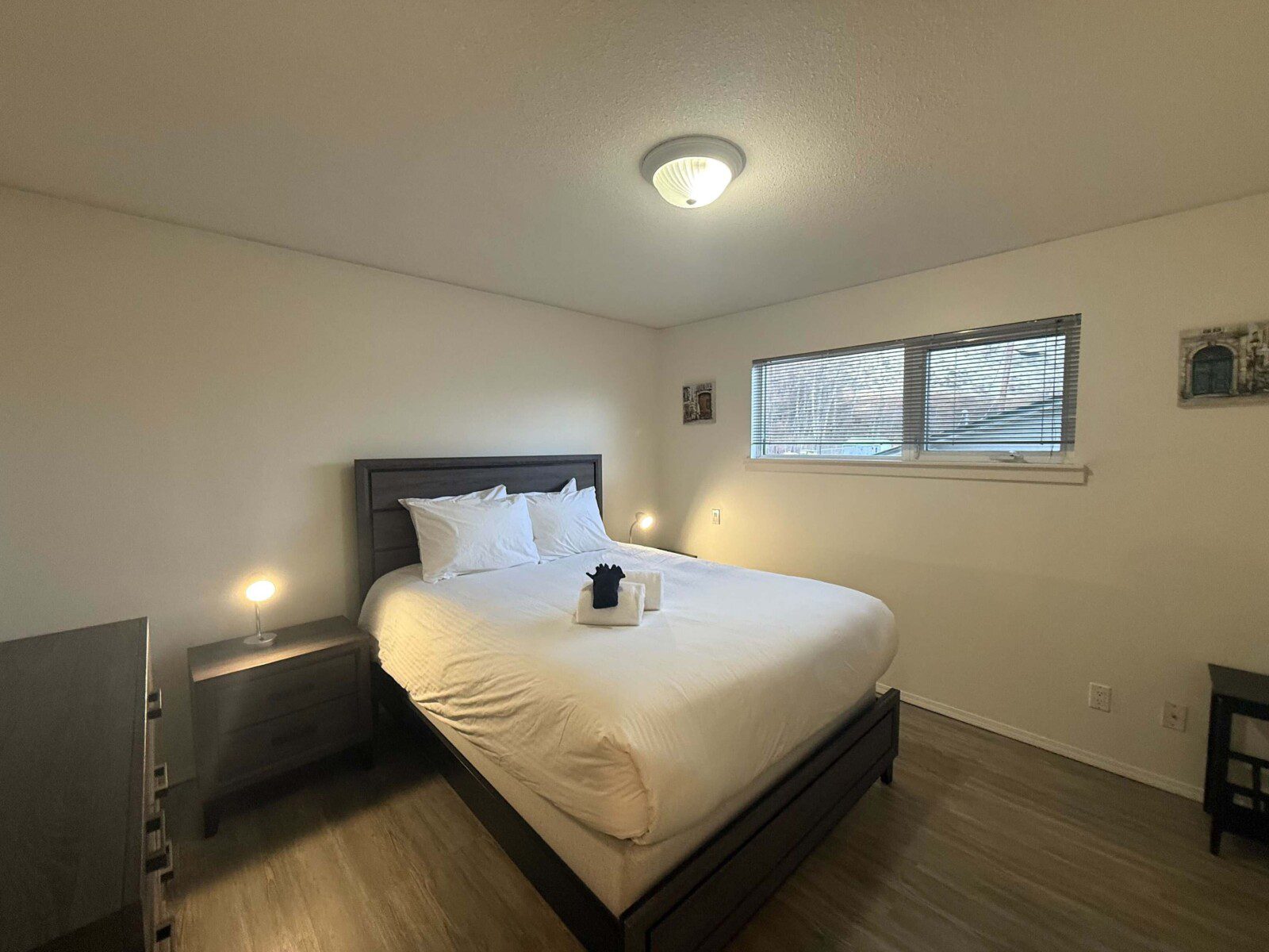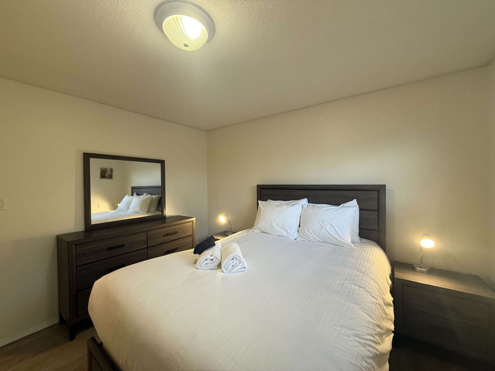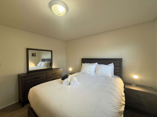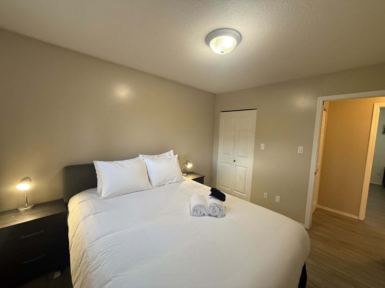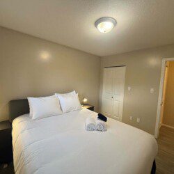 This three-bedroom suite has everything you need for a comfortable stay: three queen and double-size beds with ample storage, a spacious living area, full kitchen, and bathroom. Thoughtfully stocked for short or long visits, you’ll have fast, unlimited Wi-Fi, parking (on or off street), and the essentials that make travel easy.