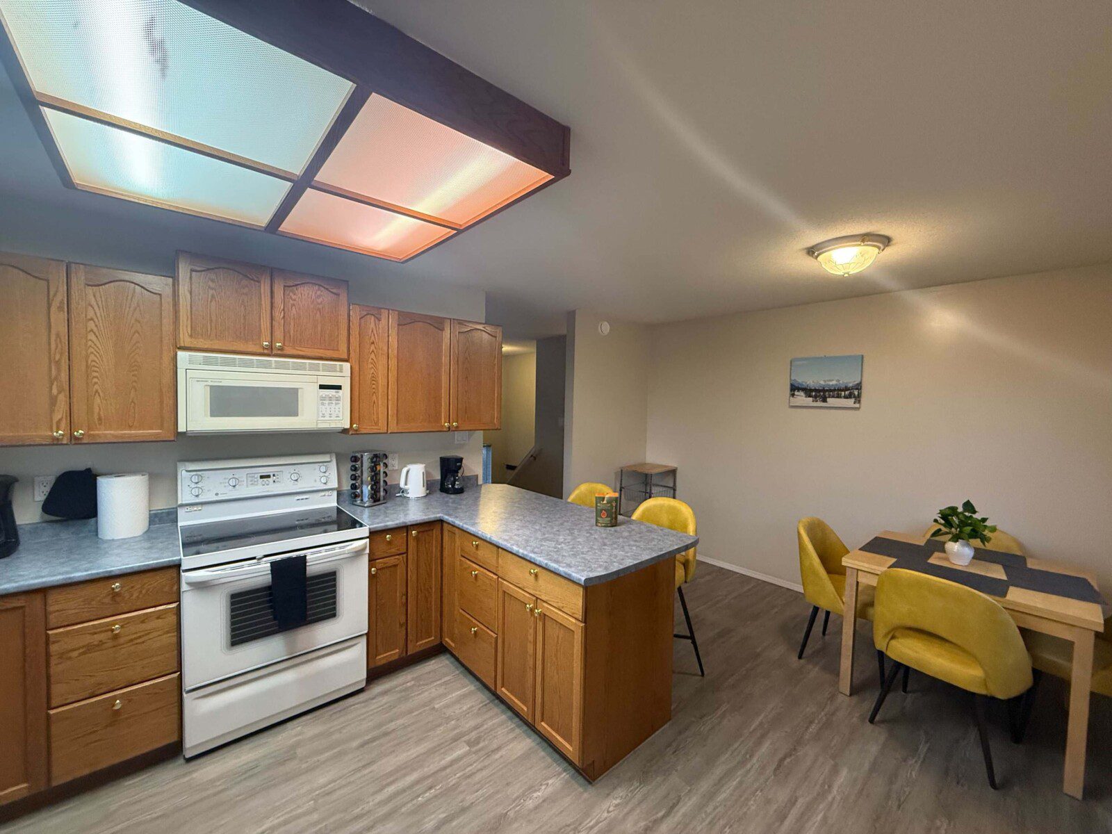 Tucked at the base of the clay cliffs and right beside the Community Gardens, this bright three-bedroom suite offers the best of both worlds: peaceful surroundings and a quick stroll to downtown cafés, the Yukon River, and the Millennium Trail. Hike up the cliff trail for a panoramic view of the city and airport, or simply enjoy a quiet evening after a day of exploring.