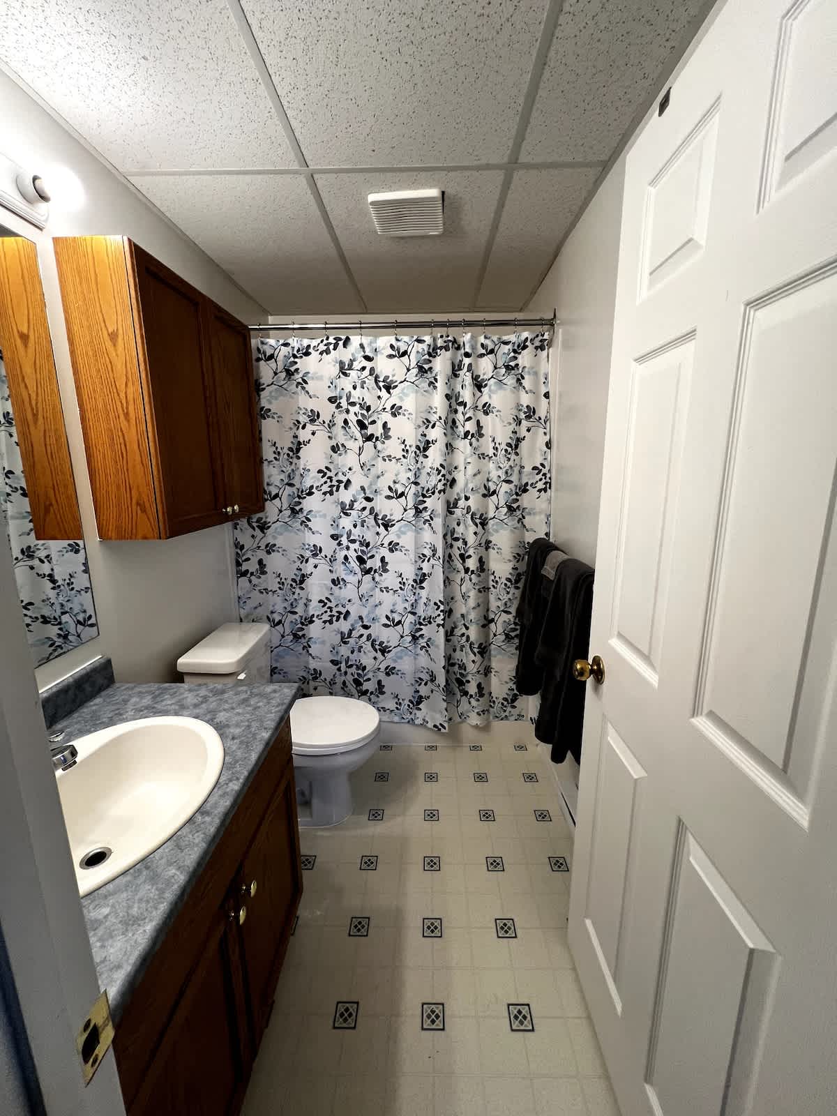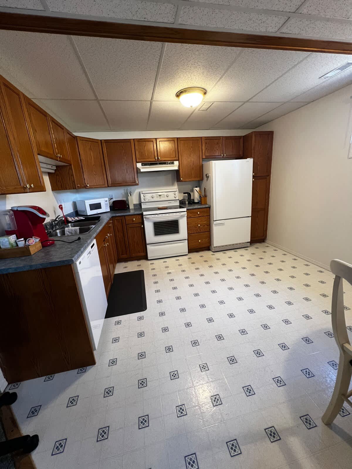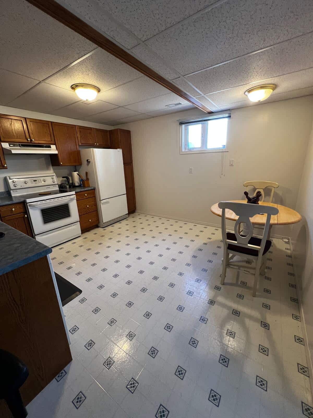 You’ll have the entire lower-level suite to yourself, including your own private entrance, kitchen, living room, bedroom, and bathroom. The laundry room, however, is shared.