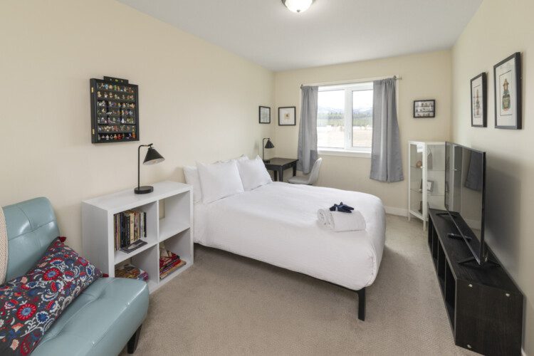 This incredible 3-bedroom townhouse for art lovers is located in the heart of Whistlebend, Whitehorse’s newest residential neighbourhood. This newly built townhouse has an open concept kitchen and living room with natural light, a large breakfast bar and a cozy dining area. In the townhouse you will find unlimited high-speed internet, ensuite washer and dryer and a smart TV in every bedroom for your enjoyment! Please note that we do not have a TV in the living room here.