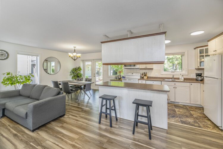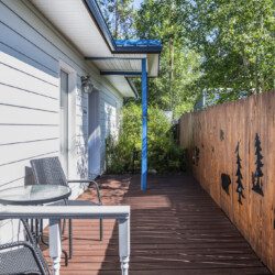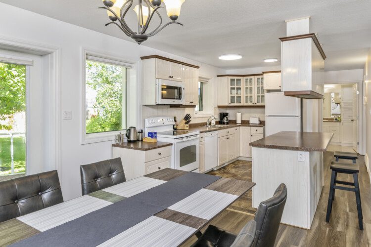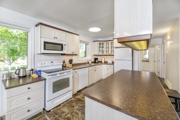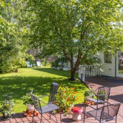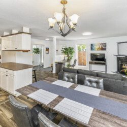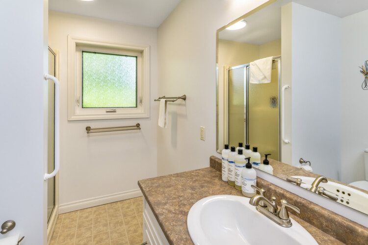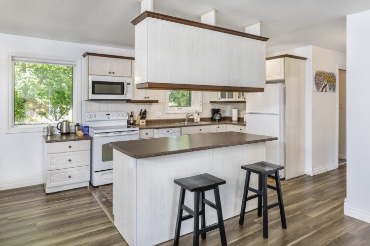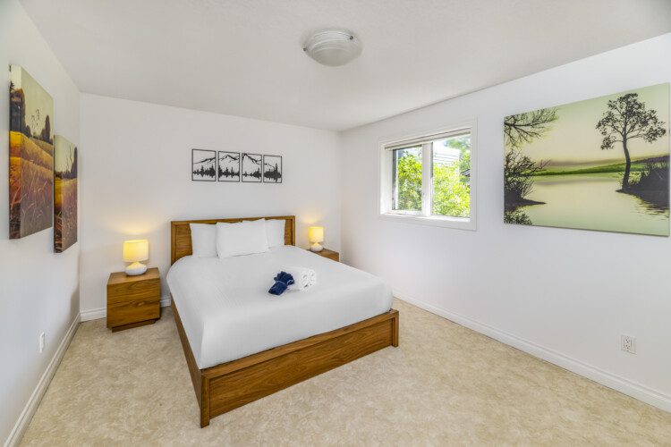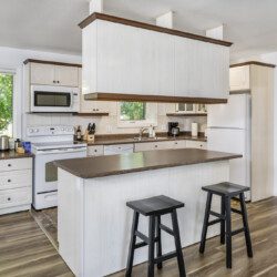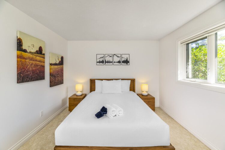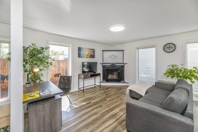 This beautifully appointed, bright, and tranquil 1-bedroom, 1-bathroom accessible garden suite features a cozy living area with a seasonal propane fireplace, spacious and well-equipped kitchen, full dining, and a comfy queen-sized bed.